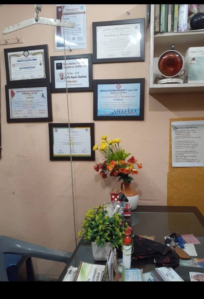 Welcome to Dr. Ayan's Physiotherapy Center, where we are dedicated to helping you regain mobility, overcome pain, and achieve your optimal physical well-being. Our team of highly trained and experienced physiotherapists is committed to providing exceptional care and personalized treatment plans tailored to your unique needs. At [Physiotherapy Center Name], we believe in a holistic approach to physiotherapy, focusing not only on treating symptoms but also addressing the underlying causes of discomfort and dysfunction. Our goal is to help you not just recover from injury but also prevent future injuries, optimize performance, and enhance your overall quality of life. Our state-of-the-art facility is equipped with the latest advancements in physiotherapy technology and offers a comfortable and welcoming environment. From assessment to treatment, we utilize evidence-based techniques and therapies to ensure the best possible outcomes for our patients. Whether you are an athlete recovering from a sports injury, an individual seeking relief from chronic pain, or someone in need of post-operative rehabilitation, our dedicated team is here to support you on your journey to recovery. We are passionate about empowering our patients with the knowledge and tools to actively participate in their own healing process. At [Physiotherapy Center Name], we prioritize personalized care, taking the time to listen to your concerns and understand your goals. Our team works collaboratively with you, developing comprehensive treatment plans that may include manual therapy, therapeutic exercises, modalities, and education on injury prevention and self-management strategies. We are proud to serve our community and are committed to making a positive impact on the lives of our patients. Let us be your partner in achieving optimal health, mobility, and wellness. Contact us today to schedule an appointment and take the first step towards a healthier, pain-free, and active life. Ayan Physiotherapy Center: Empowering Movement, Restoring Lives.